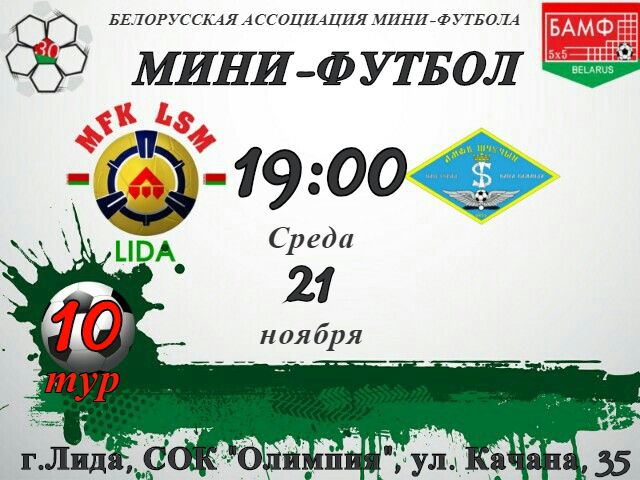 Мини-футбольный «Лидсельмаш» проведет сегодня матч 10-го тура чемпионата страны. На площадке спортивно-оздоровительного комплекса «Олимпия» наша команда будет принимать «Щучин». Игра начнется в 19 часов. Отметим, будущий соперник лидчан в настоящее время занимает 12-е место в турнирной таблице. «Лидсельмаш» находится на 3-й строчке.